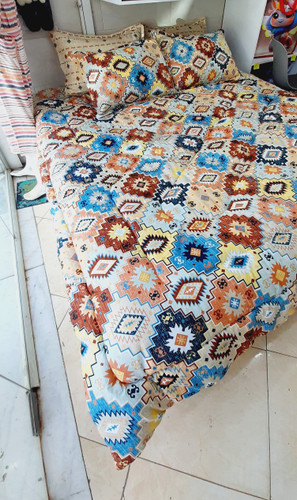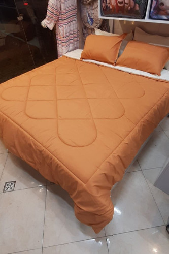 روتختی دو نفره ۶ تکه هتلی لحاف بزرگ آجری شیری