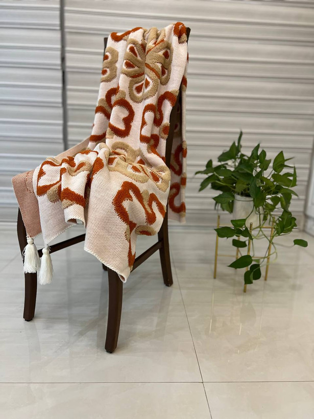 شال مبل طرح باران رنگ نارنجی تمام گل برجسته