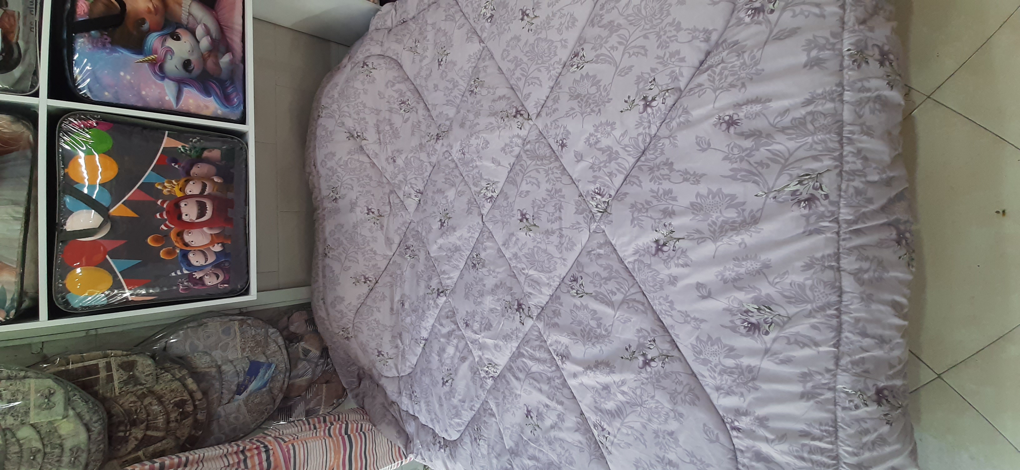 ۲ عدد روبالشتی از طرح روی لحاف و ۲ عدد روبالشتی از طرح پشت لحاف به همراه یک عدد ملحفه کشدار و یک عدد لحاف