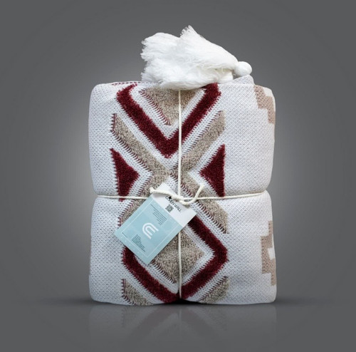 شال مبل طرح پانچ وزن سنگین رنگ زرشکی کرم